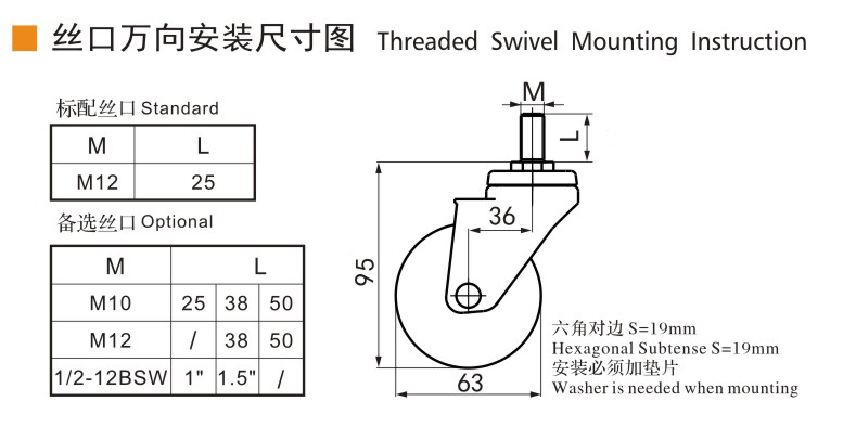 EDL Light 2.5'' 80kg Threaded Swivel PU Caster 372325-3725-77