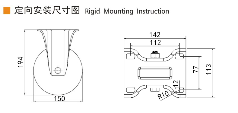 JARABO High elastic heavy 6"460kg Rigid TPU Caster J77506-H736-86A/M12X80